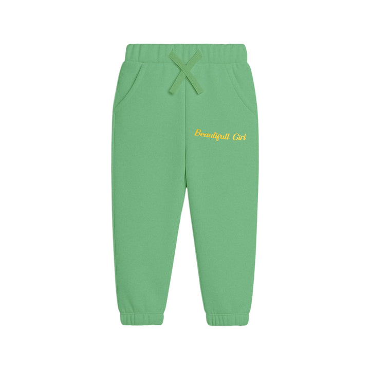 This is a cheerful and artistic two-piece loungewear set for children, in a bright yellow color. The set includes a long-sleeve sweatshirt and matching jogger pants. The sweatshirt has a prominent graphic on the chest featuring a large, pink checkered heart, a cartoon bear, a band-aid, and the stylized text "Mslcew ARTIST CLUB." The matching jogger pants have a drawstring waist and a smaller version of the "Mslcew" graphic on one leg. This set is perfect for casual wear, play, or relaxing at home.