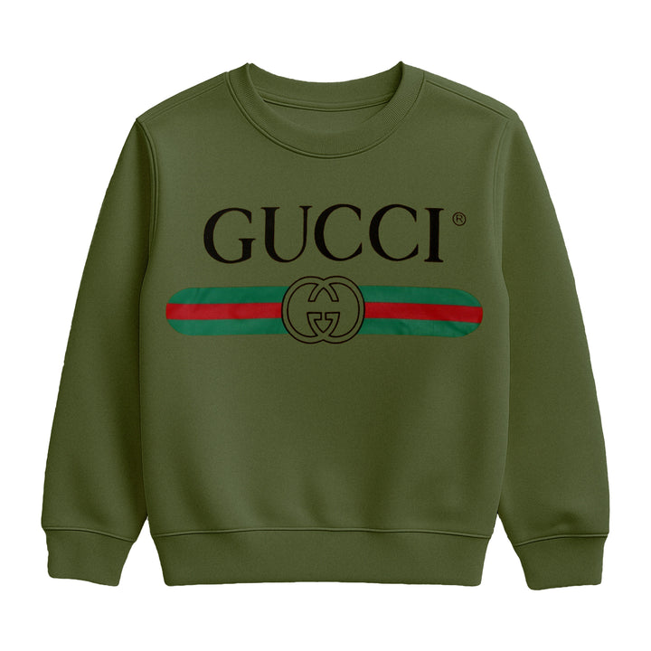 Elevate your child’s casual style with this premium olive green sweatshirt and jogger set. Featuring a bold Gucci-inspired logo design across the chest and jogger leg, this outfit blends luxury aesthetics with everyday comfort. Crafted from soft, breathable fabric, the sweatshirt offers a relaxed fit with ribbed cuffs, while the joggers include an elastic waistband and side pockets for added practicality. Perfect for outings, playtime, or cozy loungewear, this set adds a touch of designer flair to your little one’s wardrobe.