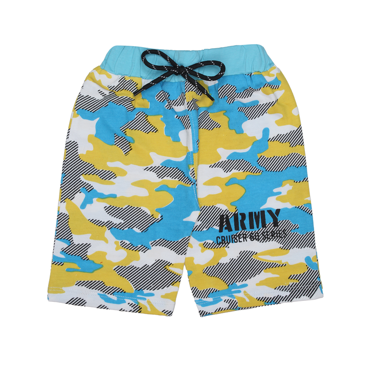 Gear up your little one for adventure with this stylish and comfortable two-piece set! The set features a soft, peach-colored sleeveless t-shirt with a bold "PROUD ARMY" graphic print, celebrating courage and strength. The matching shorts boast a vibrant and playful camouflage pattern in shades of lime green, coral, and white, with black striped accents. The shorts also feature a comfortable elastic waistband with a contrasting black drawstring and "ARMY CRUISER 60 SERIES" text. Perfect for warm weather, playtime, or casual outings, this set combines a cool army-inspired look with ultimate comfort for your young explorer.