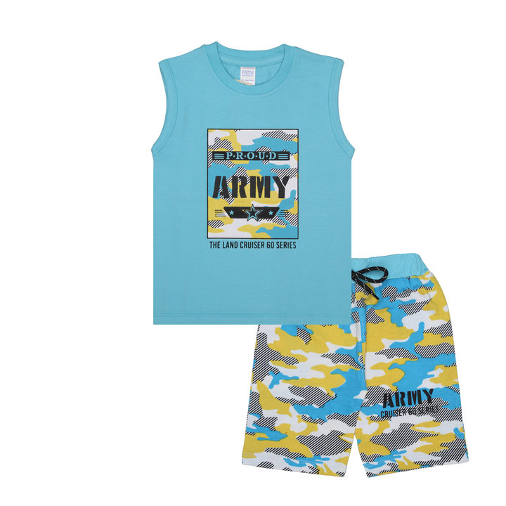 Boys' "Proud Army" Camo Print Sleeveless Tee & Shorts Suit