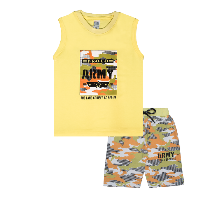 Boys' "Proud Army" Camo Print Sleeveless Tee & Shorts Suit