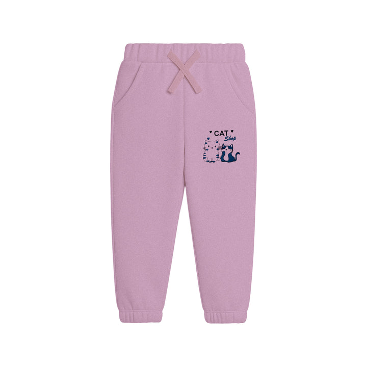 Bottom: Matching jogger pants with elastic waistband, adjustable drawstring, and small cat print on the side for a coordinated look.