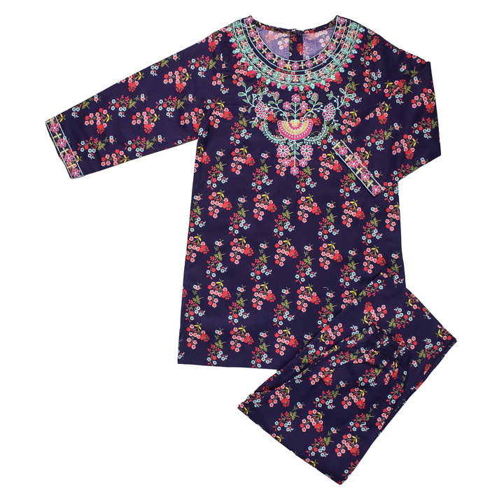 Midnight Bloom Embroidered Kurta Trouser Lawn 2Pc Set
