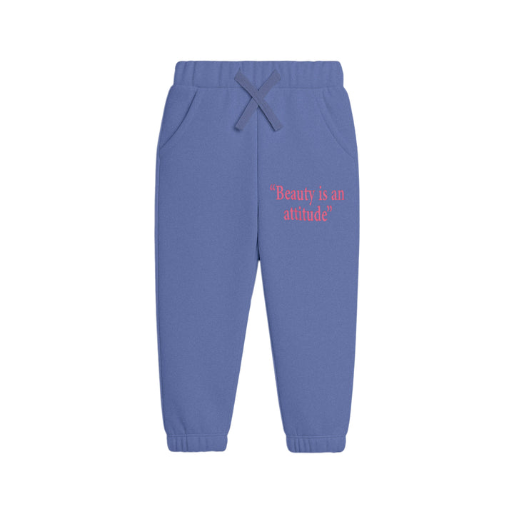 Add a trendy twist to your little fashionista’s wardrobe with this “Beauty Is an Attitude” Sweatshirt & Jogger Set. Designed in a chic purple-blue tone, this set blends comfort with bold style.