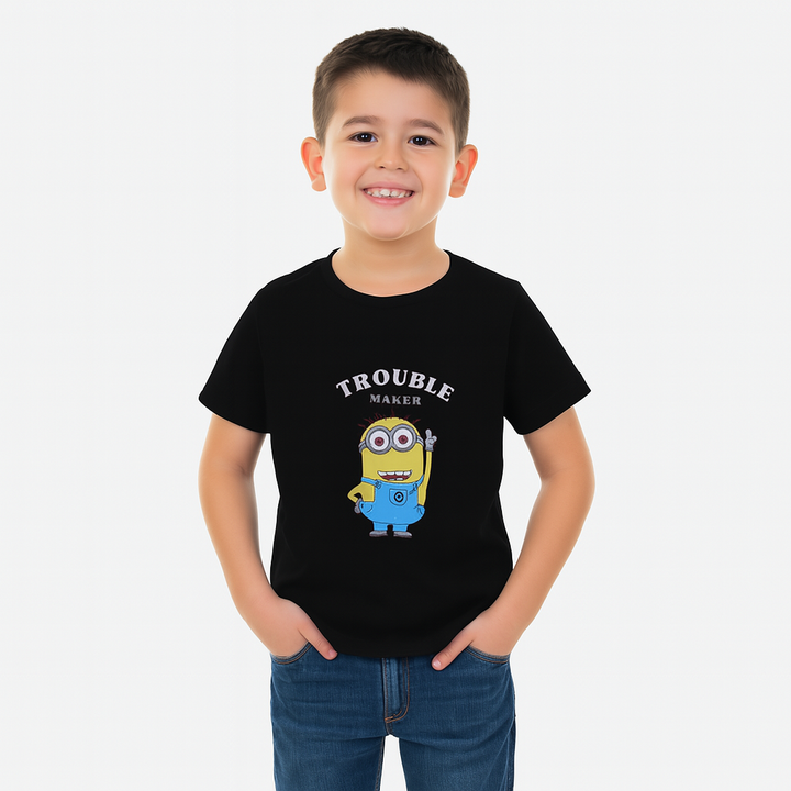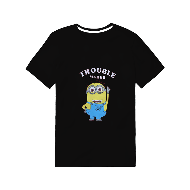 Unleash your inner mischief with the Trouble Maker Minion T-Shirt! Featuring a playful and rebellious Minion from Despicable Me, this black tee makes a bold statement with its cheeky design. The mischievous Minion, rocking its signature blue overalls and goggles, stands front and center with an irresistible grin and a raised hand—ready for trouble. The crisp "TROUBLE MAKER" text in bold white lettering adds an extra touch of attitude. Perfect for fans of the Minions and anyone who loves fun, lighthearted fashion.