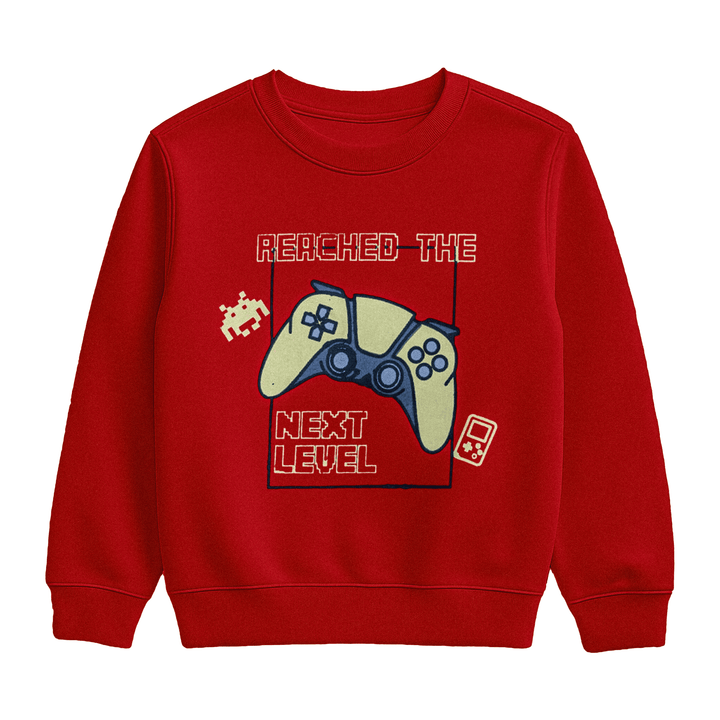 Perfect for little gamers, this red sweatshirt features a bold game controller print with the phrase “Reached the Next Level.” The design is completed with retro pixel icons for a fun, arcade-inspired vibe. Made from soft, durable fabric with ribbed cuffs and hem, it ensures comfort while letting kids show off their gaming passion. Ideal for school, casual wear, or weekend fun—this sweatshirt is a must-have for every young gamer’s wardrobe.