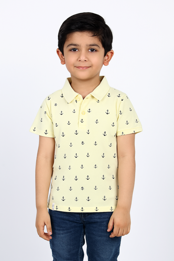 This breezy beige polo shirt brings a touch of tropical charm to your little one's wardrobe. Featuring a scattered palm tree print in sleek black, it delivers a playful yet stylish vibe perfect for everyday adventures. The classic collar and two-button placket ensure a smart finish, while the soft fabric keeps things comfy. A small brand tag at the hem subtly ties the look together. Whether for a day out or casual gatherings, this shirt offers effortless charm with a fun, summery twist!