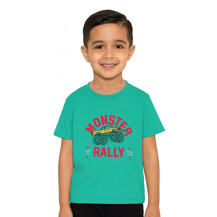 Unleash your inner off-road champion with the Monster Rally T-Shirt! Featuring a bold yellow monster truck front and center, this graphic tee embodies the adrenaline of high-speed rally action. The “MONSTER RALLY” text in striking red adds a dynamic edge, while small accents like red stars and phrases like “A Little Dust Never Hurts” reinforce the rugged spirit of adventure. Designed on a vibrant green fabric with a black inner collar lining, this t-shirt is perfect for fans of monster trucks and motorsports. Whether you're tearing through dirt tracks or just rocking a powerful look, this tee keeps the energy high and the style sharp.