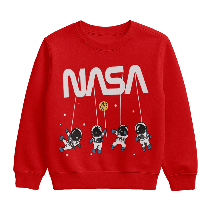 Let your little explorer dream big with this bold red NASA sweatshirt featuring adorable astronauts floating in space. Made from soft, durable fabric for all-day comfort, it’s perfect for kids who love science, space, and adventure — combining style, warmth, and imagination in one cozy outfit.